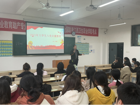 近日,v站体育官网以“党史学习教育”为契机,开展了2021级新生入党启蒙教育讲座。讲座由v站体育官网党总支书记朱福良主讲,学生党支部牵头人、支部委员、团总支书记和2021级新生代表参加。