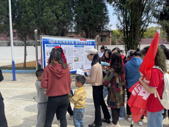 活动中,学生志愿者们热情招呼过往村民,发放反电诈和防疫宣传手册,为村民讲解防范电信诈骗和防疫知识,同时耐心地介绍“国家反诈中心”APP中具备的诈骗举报、诈骗预警、身份验证、风险查询等多种功能,曾老师手把手地指导居民群众观看反诈宣传栏,安装使用反诈APP,切实守住群众手机这一重要反诈阵地。