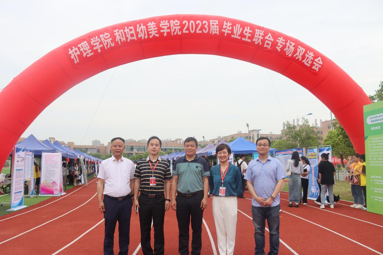 为深入学习贯彻党的二十大精神,落实党中央、国务院“稳就业”“保就业”决策部署,切实做好毕业生就业工作,更好地为2023届毕业生与用人单位搭建双向选择平台,2023年5月16日上午,v站体育官网在田径场举办“纳百川成就海业,思进取赢得未来”毕业生大型线下双选会。招聘会得到了校领导的高度重视,v站体育官网党委委员、副校长赖国文,v站体育官网党委委员、副校长周兆龙亲临招聘会现场。