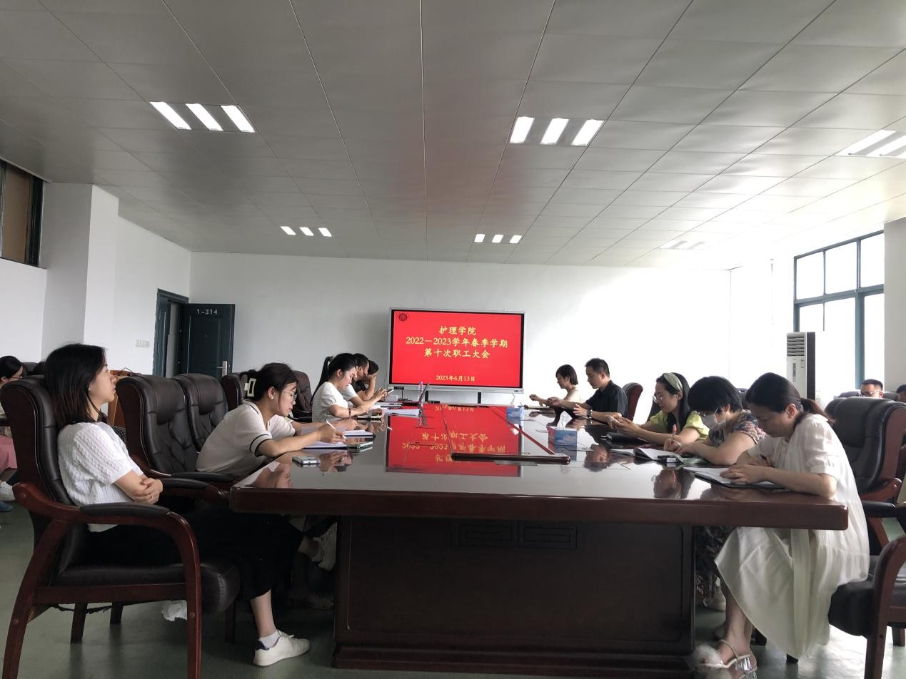 6月13日下午,v站体育官网2022-2023学年春季学期第十次职工大会在1号实训楼314教室隆重召开。v站体育官网全体教职工参加会议。v站体育官网副院长胡颖辉主持会议。