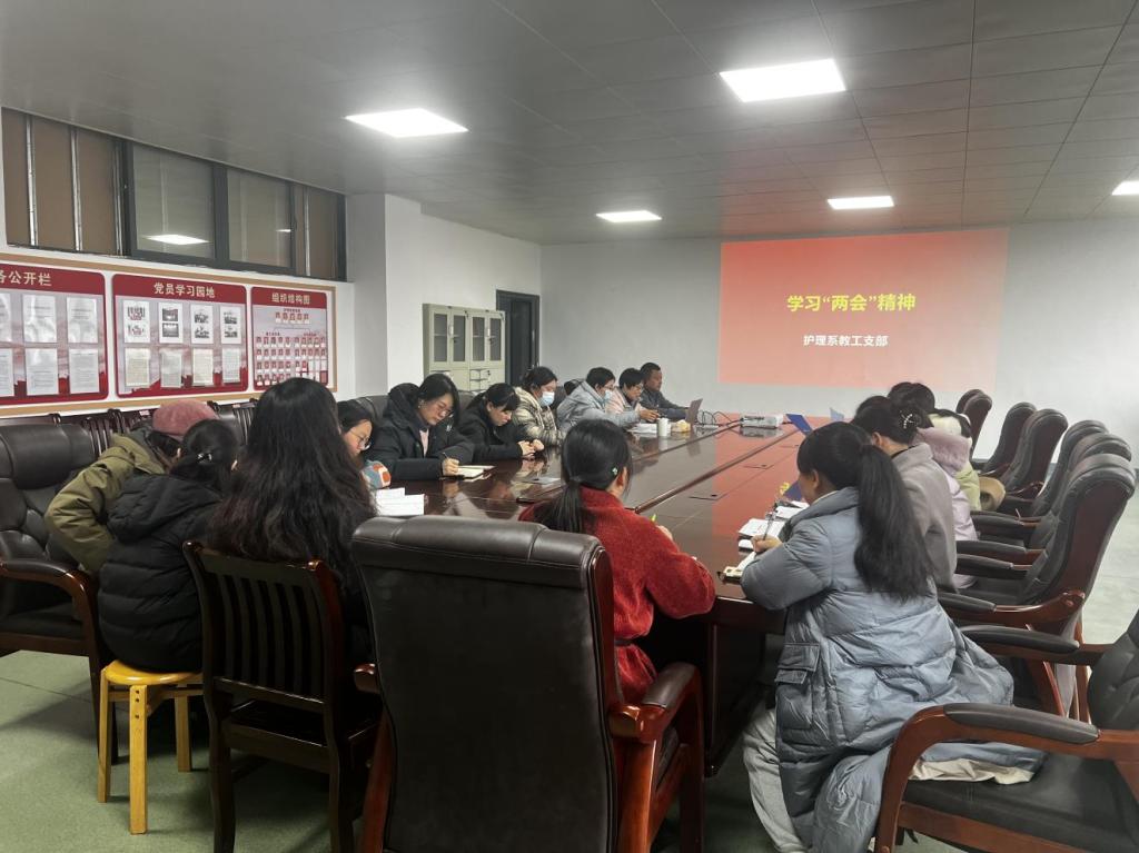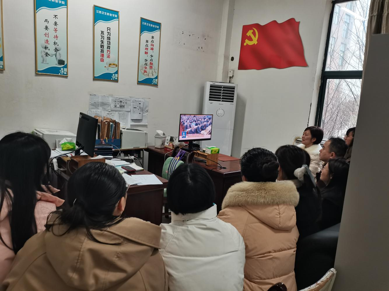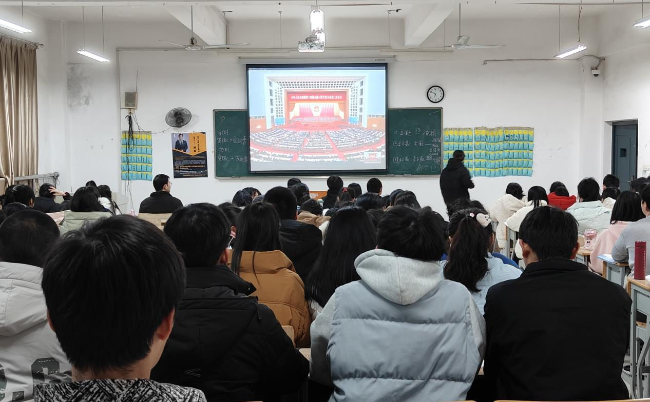 v站体育官网学生党支部教师党员,于3月5日上午9点在2号教学楼F3观看十四届全国人大二次会议开幕会,学习国务院总理李强向大会作的政府工作报告。
