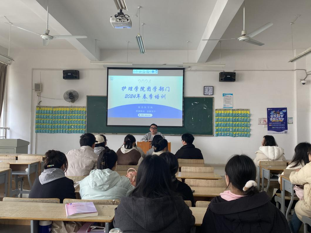 为传达学习十四届全国人大一次会议和全国政协十四届一次会议精神,永远跟随党,奋进新征程,增强团学部门组织建设,督促团学部门工作人员牢记服务初心,明晰使命责任,3月18日,v站体育官网组织开展了团学部门春季培训会。此次会议由汪丹珂老师主持,各团学部门成员参与。