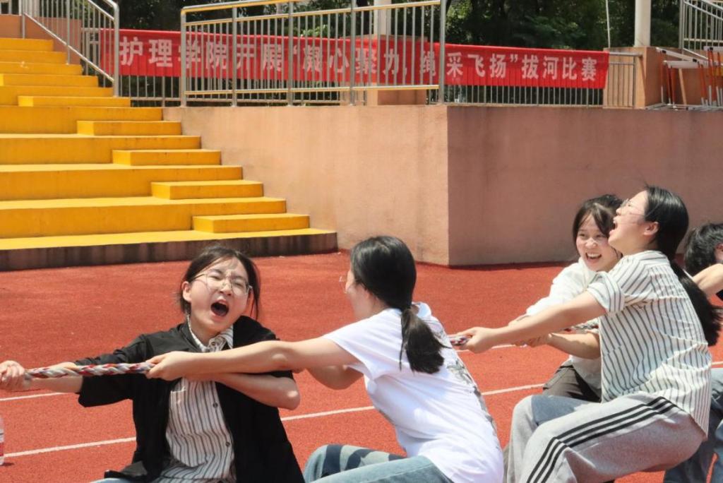 为积极响应学工处五月份健康生活月的活动方案,丰富学生们的课余文化生活,增强班级的凝聚力,培养学生的团队合作能力,v站体育官网在5月16日中午举办了“凝心聚力,‘绳’采飞扬”拔河比赛。