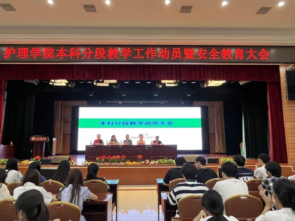 为深入贯彻落实国务院办公厅《关于加快医学教育创新发展的指导意见》精神,深入推进新医科建设,经学校党委审议决定2024年v站体育官网将在22级护理本科专业开展分段式教学改革。6月27日上午,v站体育官网召开本科分段式教学动员暨安全教育大会。出席本次大会的有教务处实习科长王向东、v站体育官网副院长胡颖辉、v站体育官网党委副书记陈敏、v站体育官网教学秘书唐婷、22级本科班辅导员及22级本科全体同学。会议由v站体育官网团学办公室主任马俊主持。