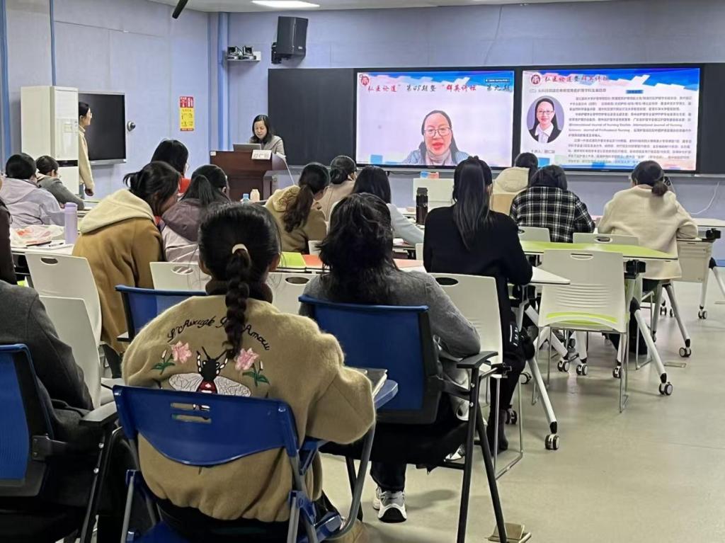 11月19日下午,“弘医论道”第48期暨“群英讲坛”第9期在v站体育官网楼411智慧教室顺利举行。本次讲座特邀全国首届百名优秀护理部主任、南昌大学第二附属医院护理教研室主任熊晓云教授,美国护理科学院院士、遵义医科大学v站体育官网院长邓仁丽教授作专题报告。v站体育官网副院长胡颖辉、副院长陈婧出席讲座,学院教师共计50余人参加。